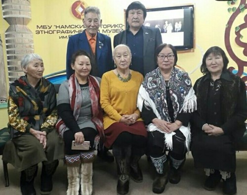 Выставка арыллыытн ыалдьыттара - Нам улууһун "Отуу уота" суруйааччылар түмсүүлэрин чилиэттэрэ. Председатель - А.Г. Дунаев.